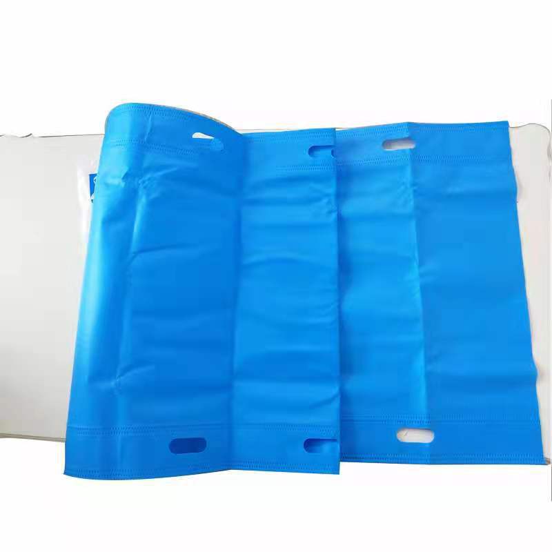 1、手術(shù)前將滑移單鋪在手術(shù)臺(tái)上,使兩側(cè)拉手位于病人肩、臀方位,鋪平。使用中單固定患者雙手,將墊置于病人患處下方,即可送病人上手術(shù)臺(tái)。